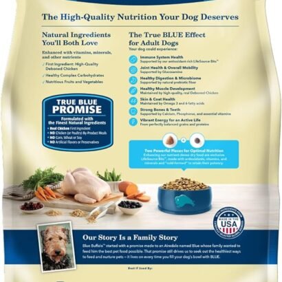 REAL CHICKEN AS THE PRIMARY INGREDIENT: Blue Buffalo’s top-quality dog food includes high-quality deboned chicken as its main ingredient; alongside brown rice, cranberries, and vegetables for a well-rounded diet; featuring high-quality protein that supports strong muscles.