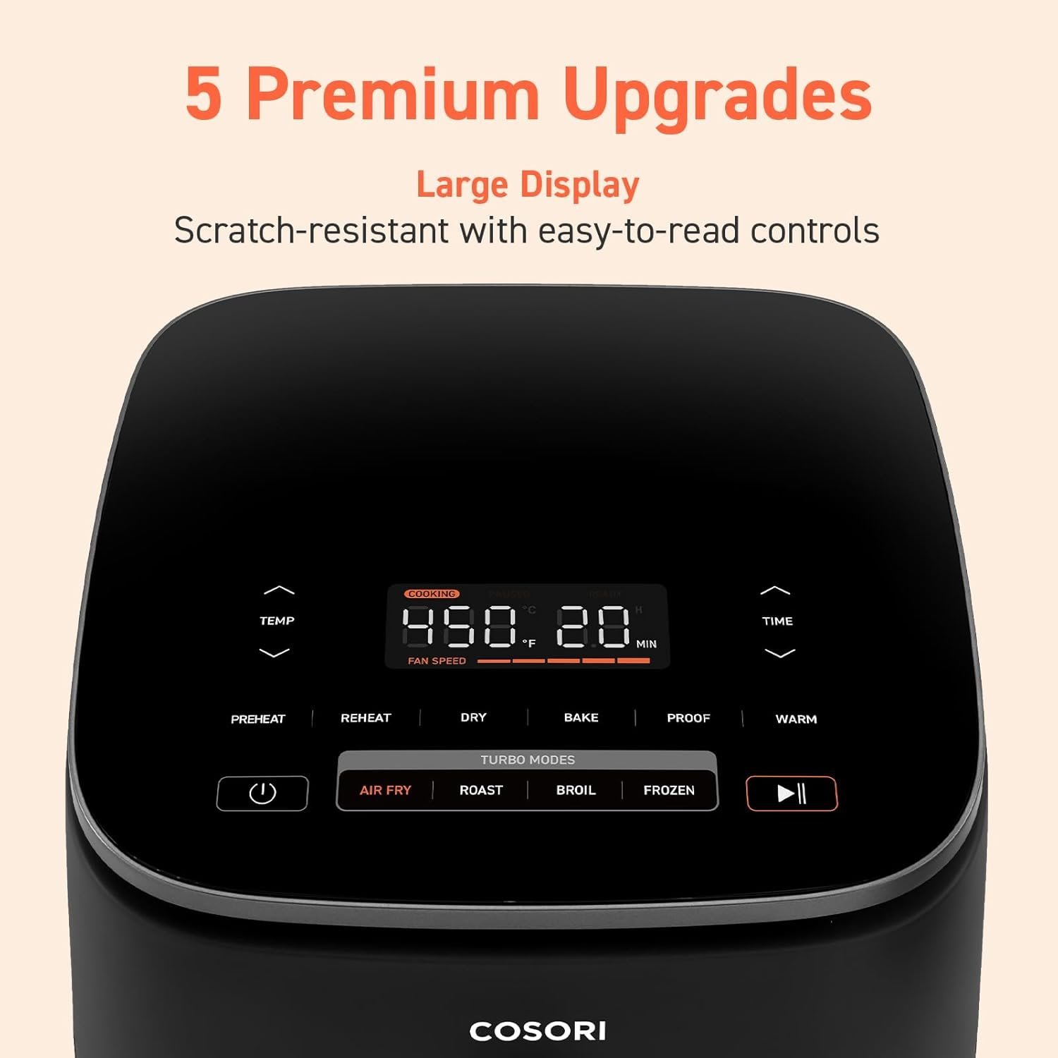 • 𝙋𝙧𝙤 𝙐𝙥𝙜𝙧𝙖𝙙𝙚: Cosori’s unique 5-fan speed system and precise 90°–450°F temperature control deliver professional-grade versatility, creating exceptional dishes across all functions with just one basket