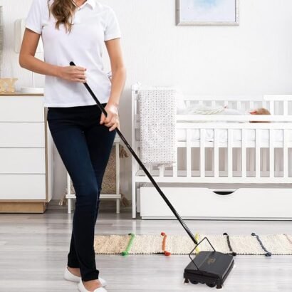 COMPACT, PORTABLE DESIGN: This lightweight and convenient sweeper can be easily transported from room to room without straining a single muscle! Furthermore, it folds flat for easy hanging storage, making it simple to tuck away in any closet.