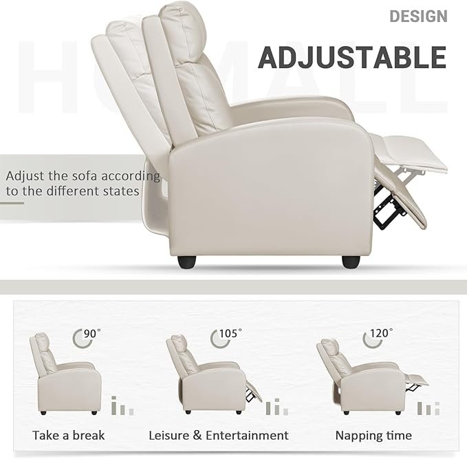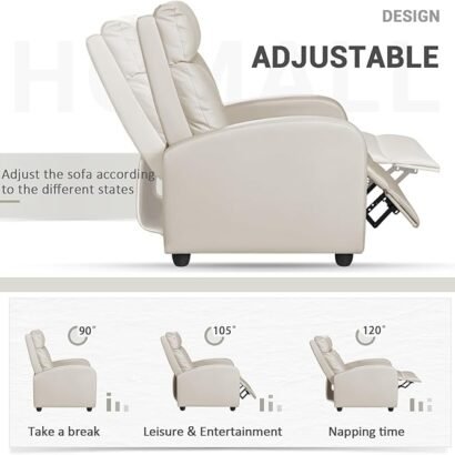 Adjustable Recliner: This recliner can be positioned in three different configurations, ranging from 90 to 180 degrees, making it ideal for gaming, working, watching movies, or taking a nap.