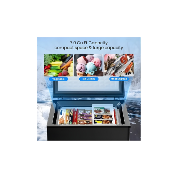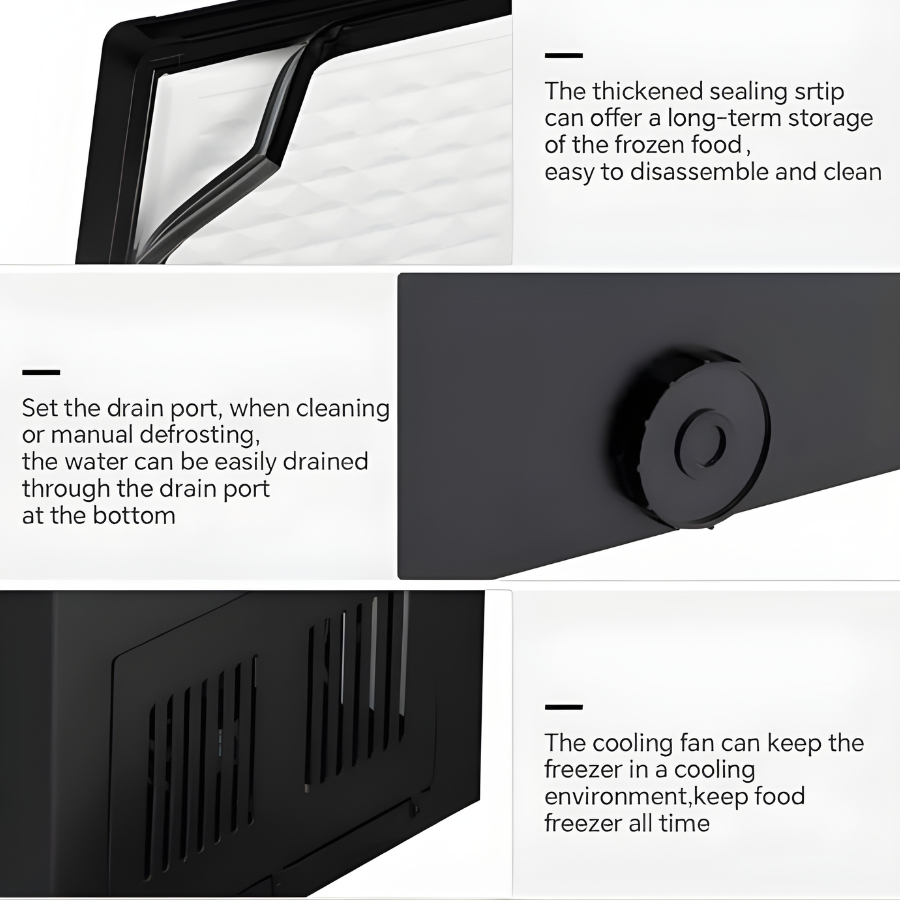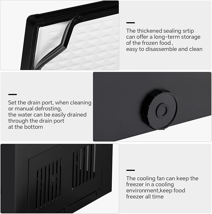 Energy Efficient & Quiet Operation: With a high-efficiency compressor, this chest freezer provides rapid cooling while consuming only 0.6 kilowatt-hours of electricity per day. Additionally, its noise level remains below 40 decibels, ensuring a peaceful environment for sleeping.