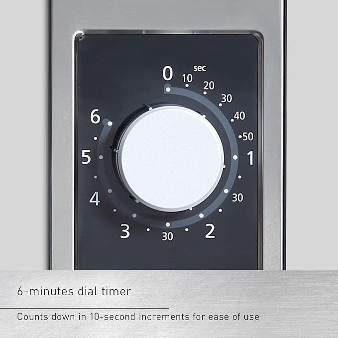6-MINUTE ELECTRONIC DIAL TIMER Intuitive dial timer counts down in 10-second increments; the timer automatically resets after the countdown.