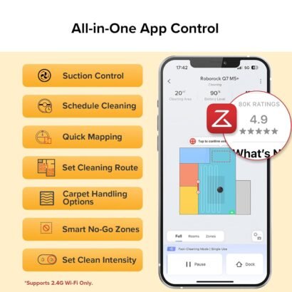Multiple Ways to Control: Manage your Roborock using the Roborock App and enjoy hands-free operation. Whether you’re relaxing at home or out and about, experience tailored and effortless cleaning without lifting a finger.