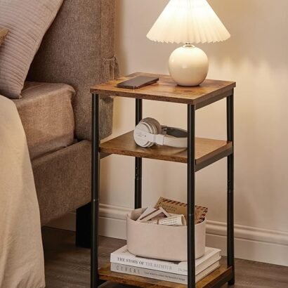 [For Compact Areas] Measuring 11.8″D x 13.4″W x 22.8″H, this end table occupies minimal floor space while providing a versatile storage solution with 3 levels—place your chamomile tea on top, a basket below, and your tablet in the center.
